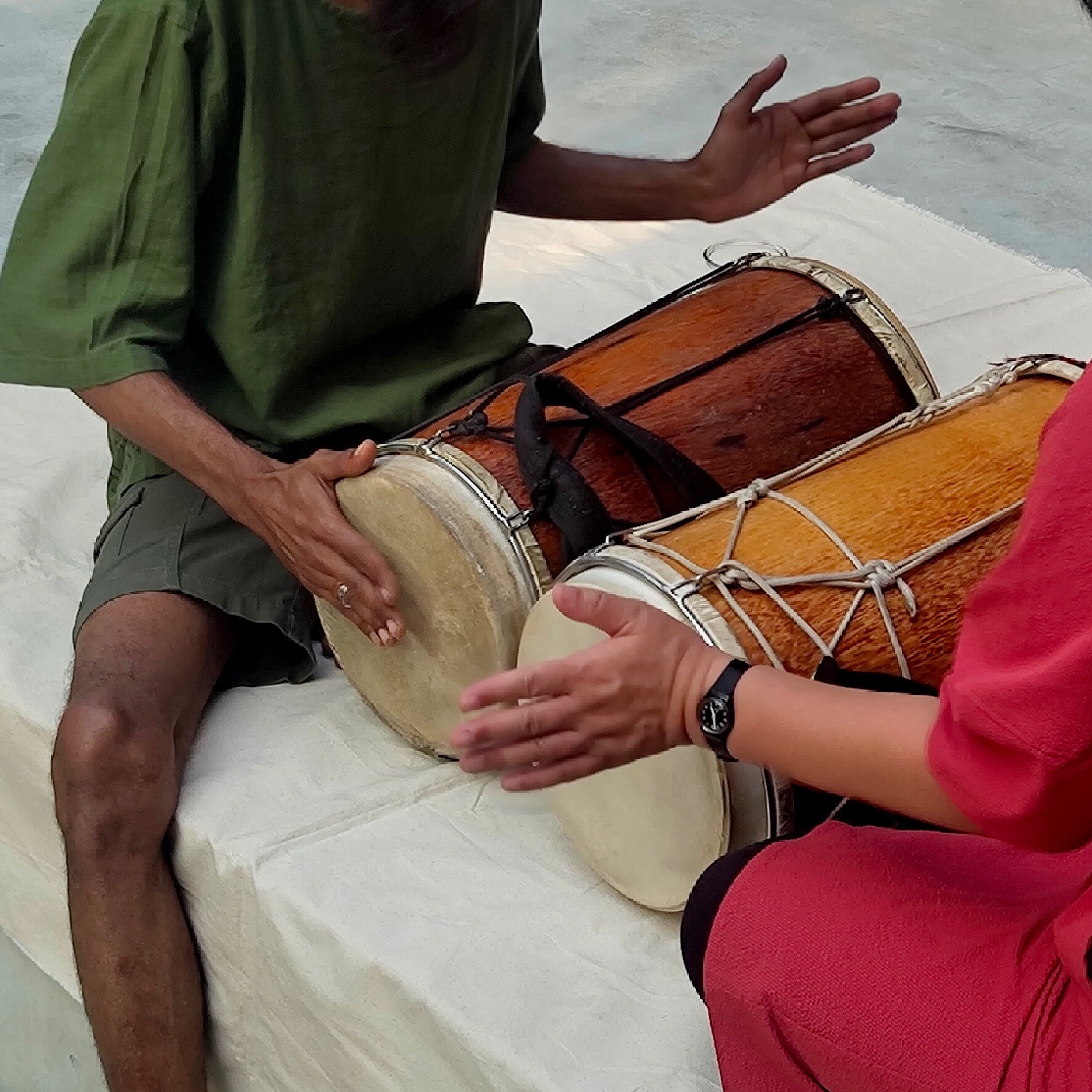 Play traditional boduberu drums